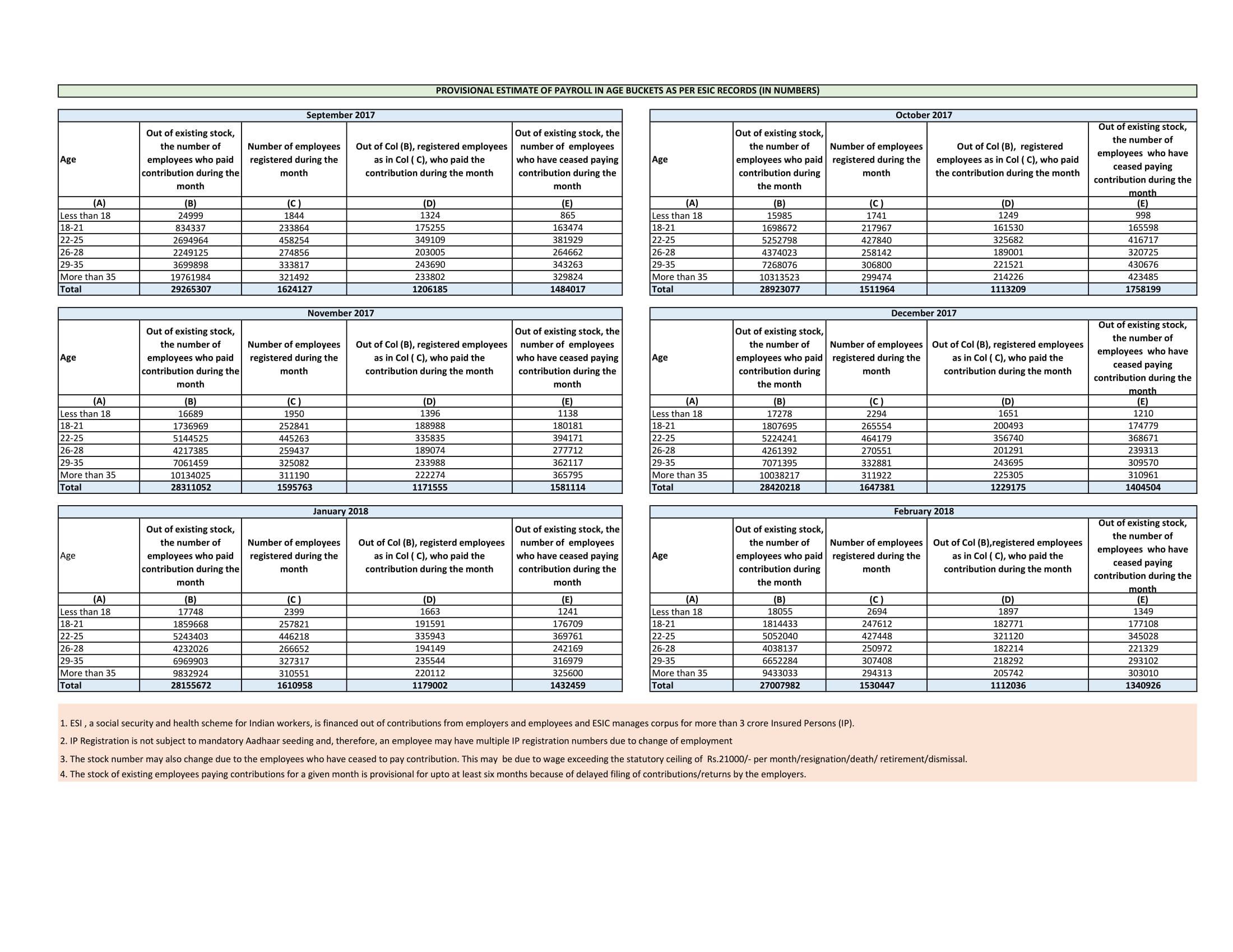 PROVISIONAL ESTIMATE OF PAYROLL IN AGE BUCKETS AS PER ESIC RECORDS (IN NUMBERS) dated 20/5/2018 size:(175.06 KB)